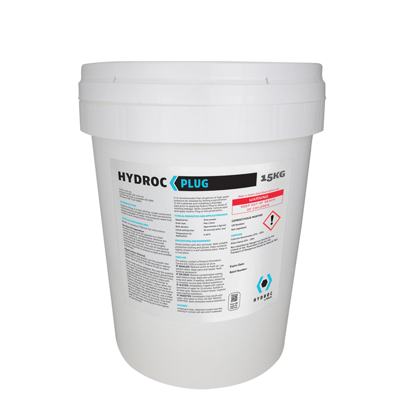 Hydroc Plug is a fast setting, single component cementitious plugging mortar that permanently stops seepage of water and pressure leaks from cracks and construction joints.