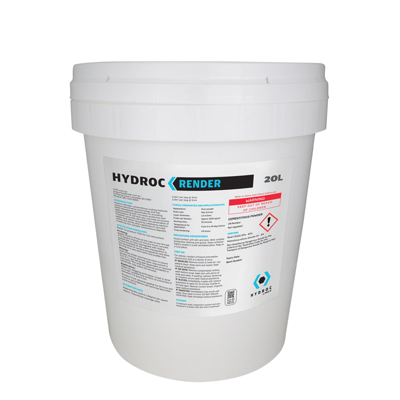 Hydroc Render cementitious coating features unique penetrative technology and has been developed specifically for providing waterproofing and corrosion protection and restoration to old and new concrete structures.